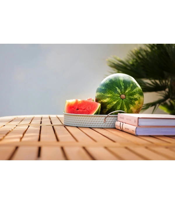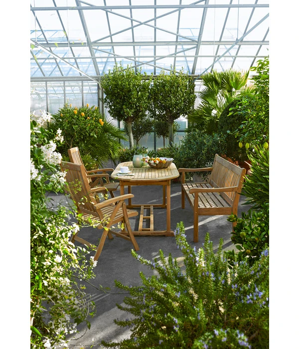 Teakholz gehört zu den wertvollsten Nutzhölzern und beweist seine Robustheit und Witterungsbeständigkeit schon seit Jahrhunderten. Wussten Sie, dass es der hohe Anteil an natürlichen Ölen ist, der Teakholz und damit auch den Dehner Ausziehtisch Havanna so unempfindlich gegenüber Hitze, Kälte und Feuchtigkeit macht? Um die Lebensdauer noch zu erhöhen, empfehlen wir Ihnen, die Oberfläche regelmäßig mit entsprechendem Hartholzöl oder Hartwachs einzulassen. Dadurch erhalten Sie auch den schönen, warmen Holzfarbton, der den Teaktisch so edel wirken lässt.