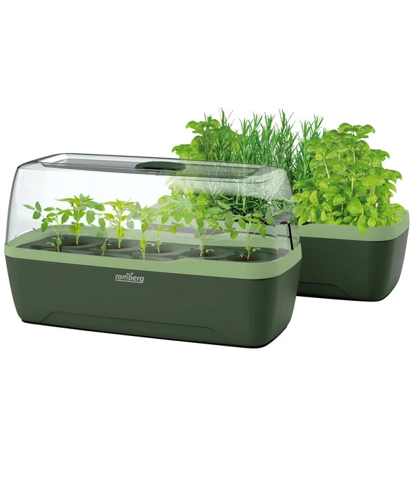 Wollen Sie sich die Anzucht Ihrer Stecklinge und Keimlinge vereinfachen? Dann setzen Sie auf das schicke BOQUBE Anzuchtset L Plus von Romberg. Das praktisches Two-in-one System bietet Ihnen Pflanzkasten und Gewächshaus in einem. Darüber hinaus hält es weitere Vorteile bereit, die das Heranziehen Ihrer Pflanzen viel unkomplizierter gestalten. Beispielsweise schützt das Wasserabfluss-System Ihre kleinen Gewächse effektiv vor Staunässe, wodurch sie besser gedeihen und Sie bessere Ergebnisse erzielen. Außerdem ist es für Sie möglich, Ihre Grünlinge auch bei geschlossener Haube bequem und sauber zu gießen, was die regelmäßige Pflege viel angenehmer macht.