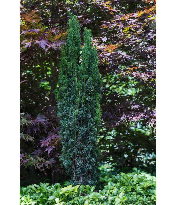 Säulen-Eiben werden bevorzugt als Heckenpflanzen verwendet. Als Solitärgehölz oder in Kombination mit hell- oder gelblaubigen Gehölzen wie z. B. dem Lebensbaum ‚Forever Goldy‘ oder Ziergräsern wie dem Zebra-Chinaschilf ‚Strictus‘ machen sie aber auch eine gute Figur. Eiben sind bis ins hohe Alter sehr gut schnittverträglich. Selbst aus abgesägten Stümpfen wachsen wieder neue Triebe nach.