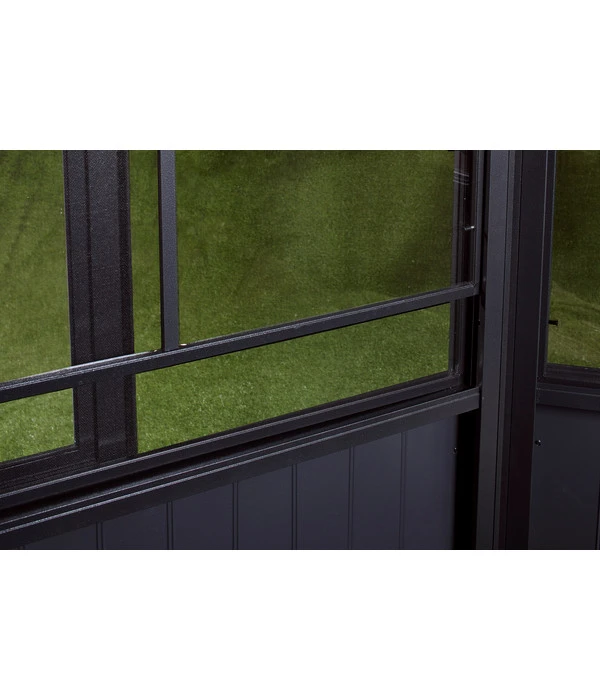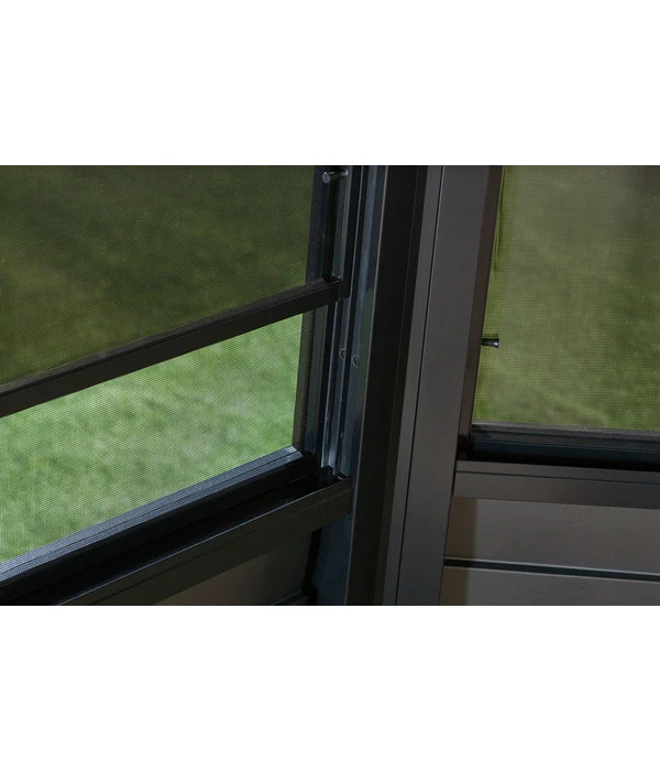 In jedem Wandelement des Sojag Pavillon Charleston ist nicht nur ein reißfestes PVC-Folienfenster enthalten, sondern zu jedem Fenster gibt es auch ein hochwertiges Moskitonetz. So ist für beste Durchlüftung gesorgt, während lästige Fliegen, Mücken oder Wespen Sie nicht in Ihrem Vergnügen stören werden. Das Folienfenster können Sie zur Durchlüftung einfach nach unten schieben und wenn Sie es reinigen möchten, können Sie es mit zwei Handgriffen herausnehmen.