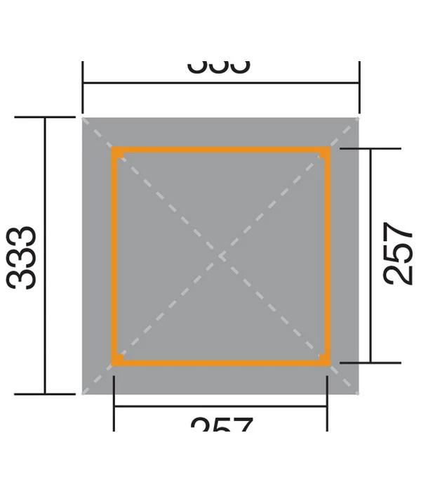 Dachüberstände: Seiten je ca. 38 cm, vorne und hinten 38 cm