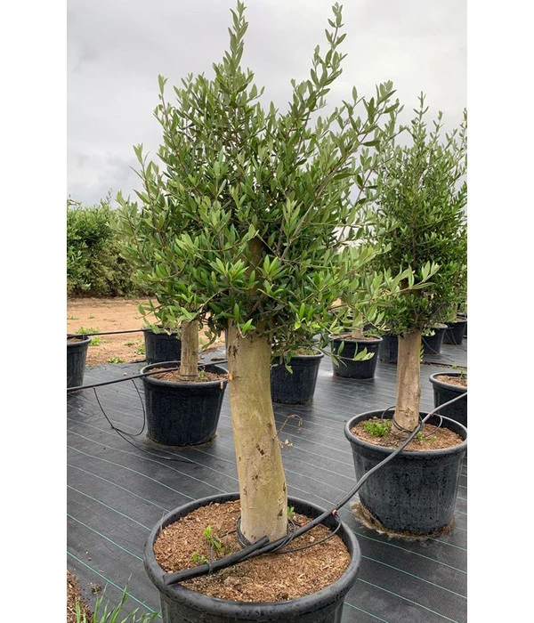 Knorrige Olivenbäume sind der Inbegriff des sonnigen Südens und wecken in uns Erinnerungen an entspannte Urlaubstage. Dabei sind die ausdrucksstarken Pflanzen mit den oft mächtigen Kronen und dem typisch silbrig schimmernden Laub keine Ziergehölze, sondern werden wegen ihrer ölhaltigen Früchte bereits seit mehr als viertausend Jahren kultiviert und gehören somit zu den ältesten Kulturpflanzen. Doch so sehr wir die Olivenbäume mit ihrer südlichen Heimat verbinden, so gut kann man den XXL Olivenbaum auch im Kübel auf der Terrasse kultivieren. Denn bei Olivenbäumen handelt es sich um recht robuste Pflanzen, die fast ganzjährig draußen im Freuen bleiben kann. Holen Sie sich den Traum vom sonnigen Süden auf die Terrasse und gönnen sich den XXL Olivenbaum!
