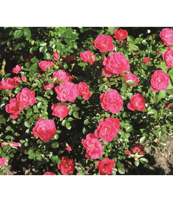 Im ersten Moment sehen ihre Bewunderer nur die Fülle der pink- bis lilafarben leuchtenden Rosenblüten, die diese kleine Schönheit so freigebig zur Schau stellt; danach wird Ihr Blick aber sicher auch auf das kräftige, mittelgrüne Blattwerk fallen, das den buschig-kompakten Wuchs der Pflanze betont und gleichzeitig den ruhigen Hintergrund für die leuchtende Blüten bildet. Mit der Zwergrose ‚Hobby®‘ haben Sie eine besonders reizvolle Vertreterin der Miniaturrosen entdeckt, die auch Patiorosen genannt werden Und damit offenbart sich gleich die Besonderheit dieser Rosensorte. Wie Sie vielleicht wissen, wird in Spanien und Portugal der Innenhof eines Stadthauses als Patio bezeichnet. Also eine kleine grüne Oase, die immer üppig mit Blumen geschmückt wird, die aber nur über moderate Wuchshöhen verfügen sollten. Und weil die Miniaturrose genau diesen Wunsch erfüllt, erweist sie sich als die ideale Rose auch für die Kultur in Töpfen und Kästen auf unseren Balkonen und Terrassen. Wenn Sie also ab sofort Ihren Balkon in ein Rosenparadies verwandeln möchten, sollte die Zwergrose ‚Hobby®‘ immer dabei sein!